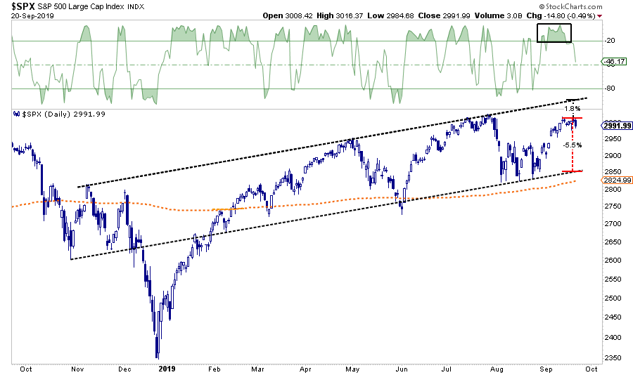 As noted last week, the “narrative” that has been driving the market higher has been one of hopes for further “Fed easing” and a resolution to the “trade war.” With the Fed not easing, and looking like they are going to be more hawkish in the future, the risk falls on Trump for the “trade war.”