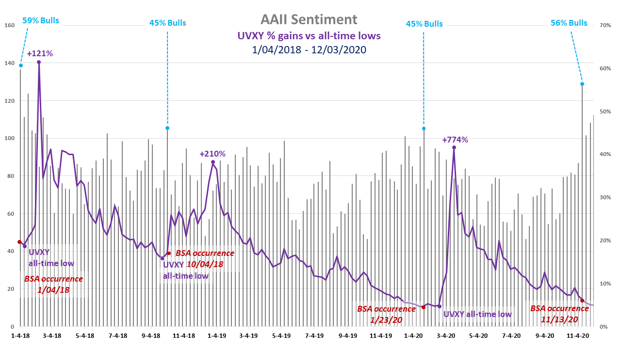There is a limited amount of capacity of capital which can trade VIX related securities. Therefore, all subscribers to the November 13 BSA occurrence are grandfathered and will have a first right of refusal to subscribe to the next Bullish Sentiment Anomaly (BSA) which occurs in 2021 or later.